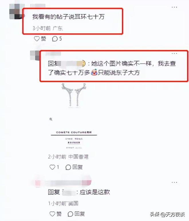 最先被网友扒出来的就是这对耳环。有人把照片放大看细节,认出是香奈儿彗星系列的满钻款,查完价格直接惊了:折合人民币差不多69.8万,钻镶得密密麻麻,在展厅灯光下闪得挺低调,但贵得吓人。