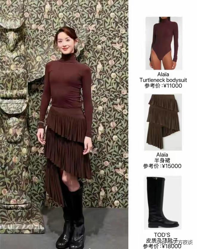 接着大家又扒她身上的套装,看着像普通打底,其实上衣要1.1万,裙子1.5万,连脚上的靴子都要1.8万,随便一件都够普通人挣好几个月。